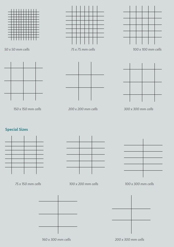 Cell Size: 50 - 60 - 75 - 100 - 150 mm